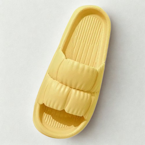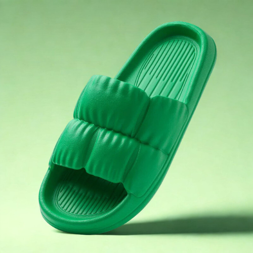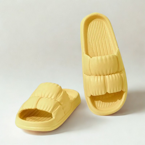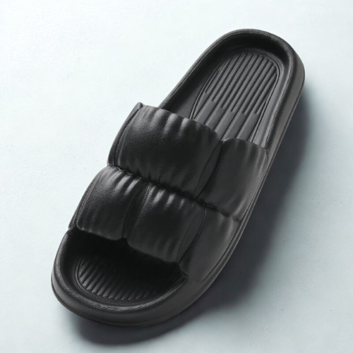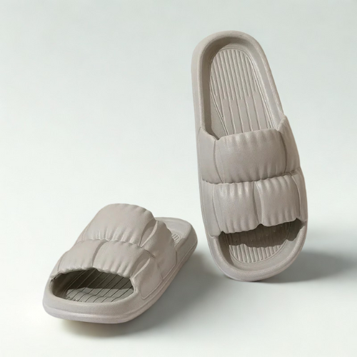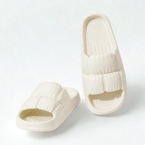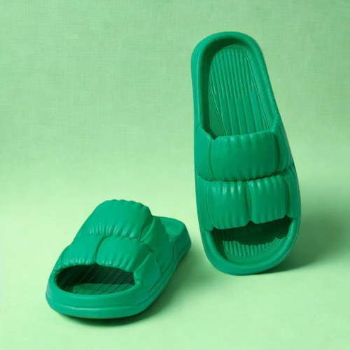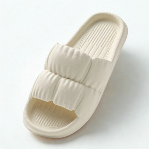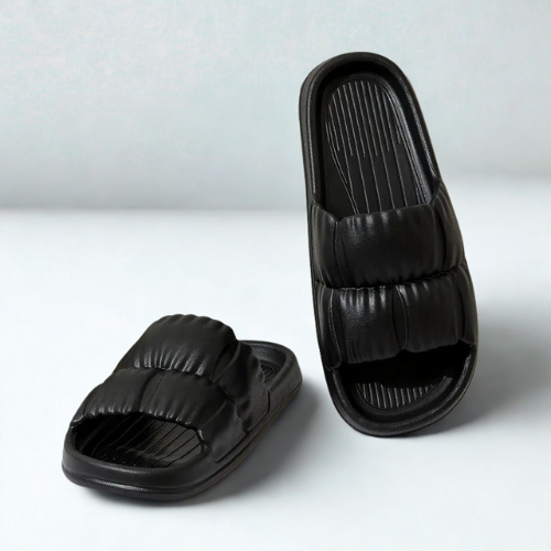A sola antiderrapante traz segurança até em pisos molhados, e o design pleated dá o toque moderno que combina com qualquer look.